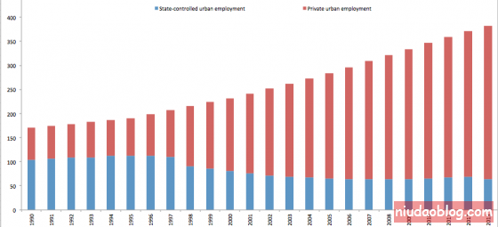 经济结构调整的另一个重要标志也值得强调,去年,中国经济中的第三产业(服务业)产值首次大于第二产业(工业和建筑业),而且这股趋势今年还在继续。去年服务业创造了2000万个新增就业机会,与此同时工业就业机会则在萎缩。