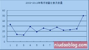 【图】2003-2013年每月被查处的官员数量(总人数)