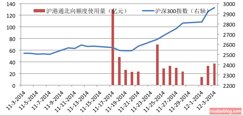 从额度上看,沪港通允许内地投资者通过上海交易所买卖香港交易所上市的股票(目前限于恒生大型股及中型股指数样本股及AH两地上市股票),每年额度为2500亿元,总额度为105亿元,允许香港投资者通过香港交易所买卖A股股票(上证180及380样本股及AH两地上市股票),总额度为3000亿元,每日额度为130亿元。虽然短期额度有限,但是却可以围绕资本跨境流动和外汇兑换累积实际操作经验,为长期扩大额度甚至彻底开放打开了空间。