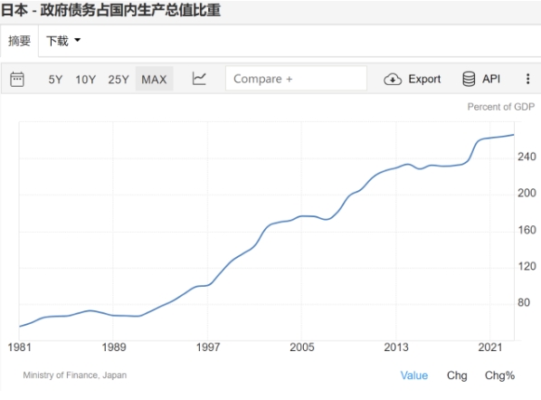 当政府负债率不断之后,只要利率上升政府的债务利息支出就会快速膨胀,让政府难以运作下去,结果日本央行就只能下场通过购买国债的手段来压制国债收益率,而央行压制国债收益率的过程就是无度印钞向市场释放基础货币的过程,当然就会导致日元的加速贬值,货币加速贬值就是国家破产的后果——全民贫困化。