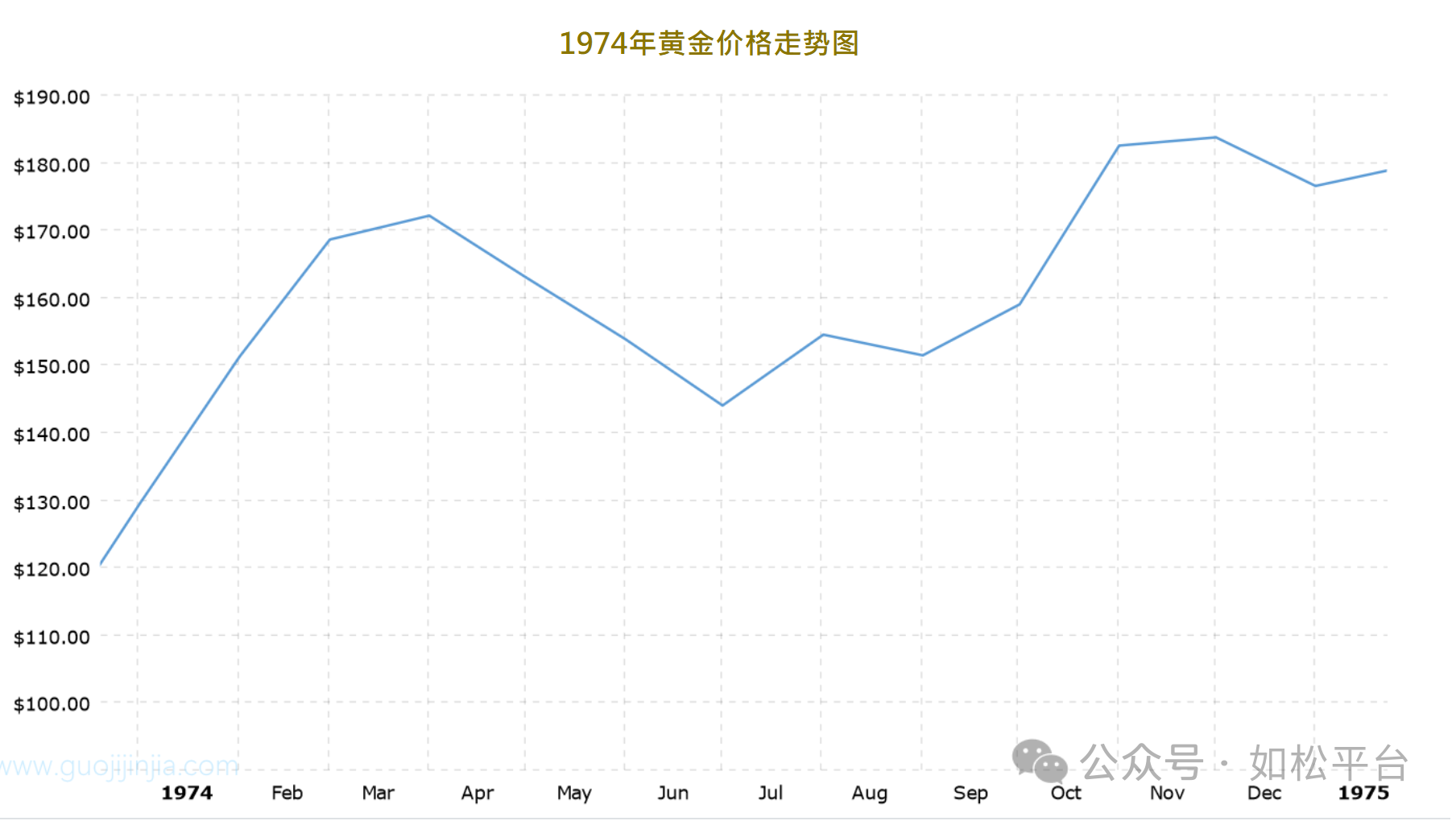 贵金属暴跌在上世纪七十年代金银超级大牛市期间同样屡见不鲜,下面的两张图是1973年、1974年黄金价格走势图,在这两年的年中前后都出现了约20%左右的下跌。当时还没有今天如此先进的互联网交易手段,如果有,在全球投资人集中恐慌抛售之下的短期跌幅肯定可以与本次的下跌幅度相比拟。。