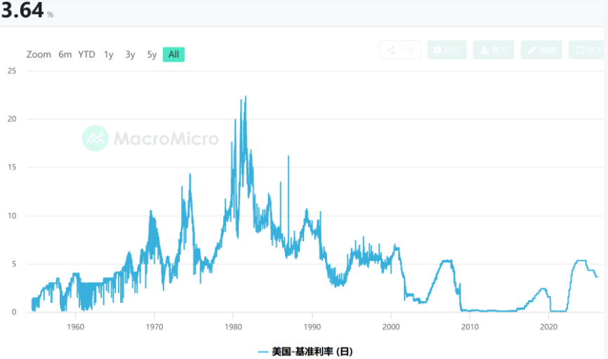 还要注意的是,无论在上世纪七十年代还是在2000年之后十多年的牛市中,都伴随着美联储的多轮加息和降息周期,见下图。