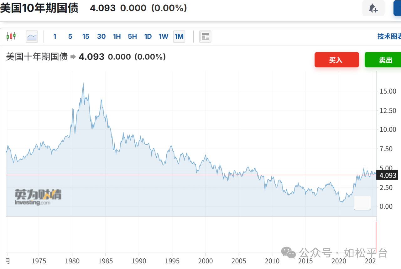 但现在所处的客观条件是不一致的,下图是美国十年期国债收益率走势图。