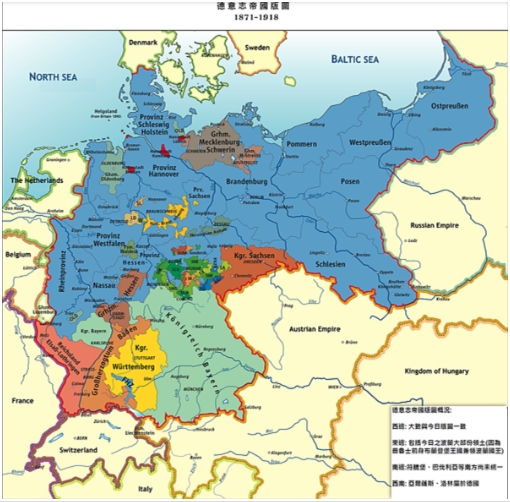 德国独立之后就开始走上扩张之路,到一战、二战时期达到鼎盛并成为欧洲大陆上的强权国家,参考下图,分别是一战、二战时期德意志第二帝国、德意志第三帝国的版图。