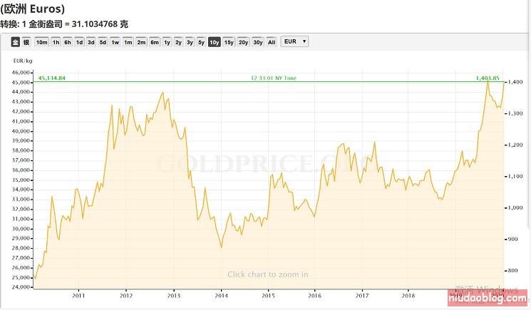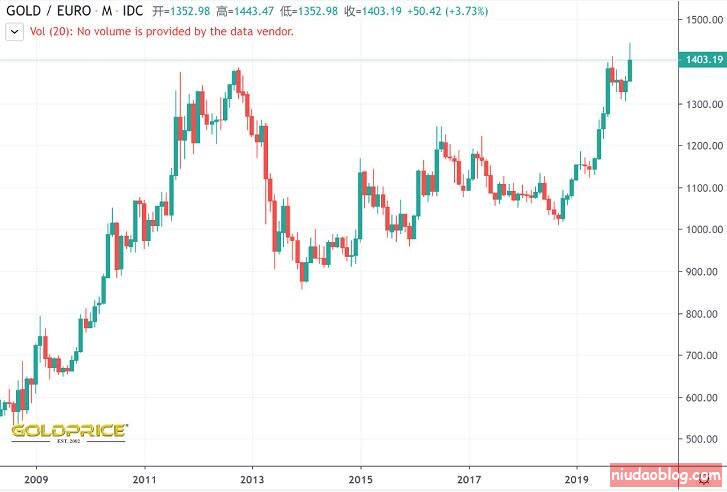 欧元是主要的储备货币之一,以金价表示的欧元购买力加速丧失,意味着纸币的整体性危机开始了。