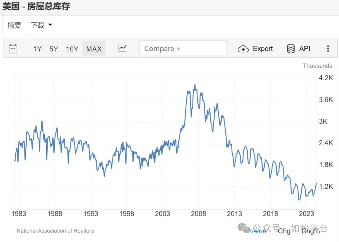 上一次萧条是由房地产引发,也就是2008年的次贷危机,也称金融海啸,美国目前的房屋总库存处于绝对的低位,远远低于2008年,美国的家庭债务率在2008年之后就持续下降,所以本次萧条不应该是由房地产和家庭债务所引发。相反,次贷危机之后美国政府的负债率出现了飙升,在高利率环境下现在的债务显然是不可持续的水平,未来的萧条更可能由美国政府高债务率、即美元危机和企业债务、即纳斯达克泡沫来引发,危机很可能就从美联储降息开始。参考下面的三张图。