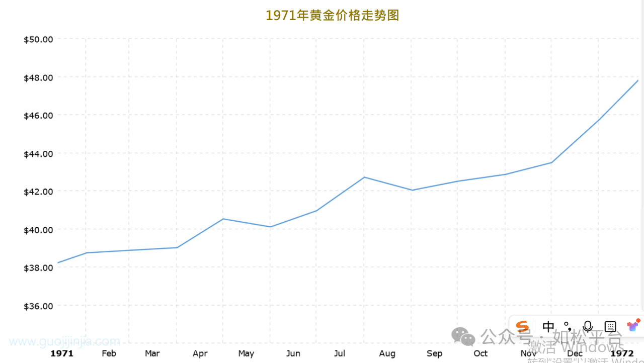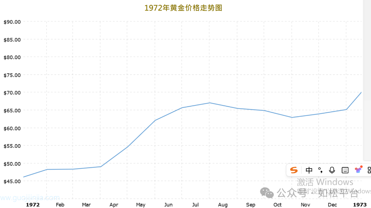 1971年8月美元正式违约,解除与黄金之间的兑换关系,如果将过去三年与1971年之后的三年相比又该如何?下面是伦敦现货黄金价格在1971至1973年间的走势图。
