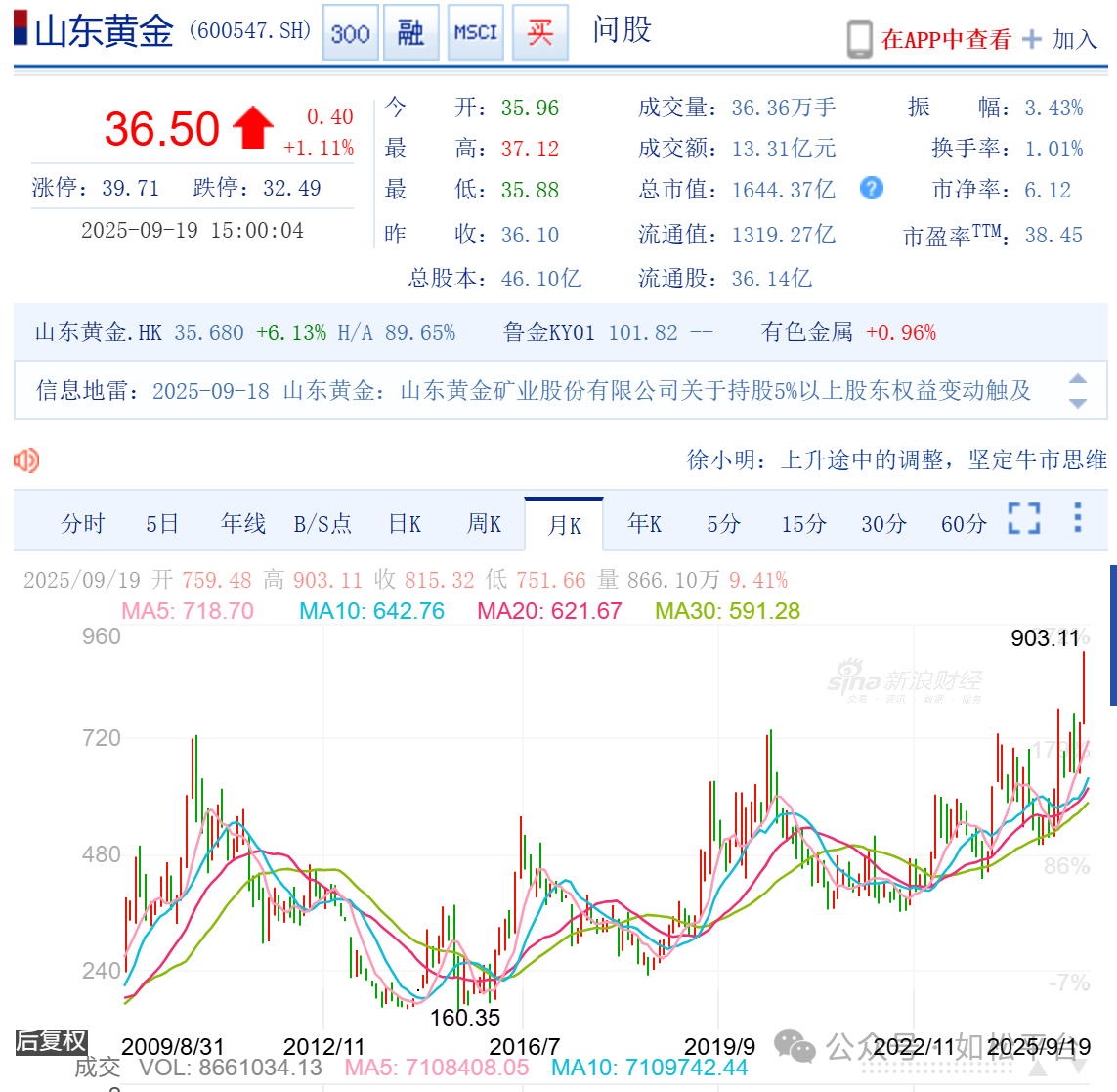 过去好多年,很多朋友问能否长期持有山东黄金,我都会给与确定的回答,这就是原因。