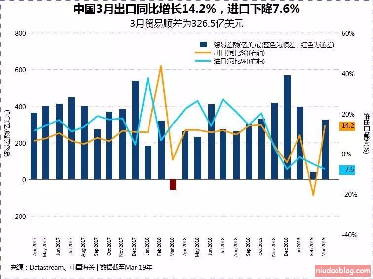 而根据我国海关总署的数据显示,以美元计算,中国3月出口同比增长14.2%,进口同比下降7.6%。一季度,出口同比增长1.4%,进口同比下降4.8%,贸易顺差为763.1亿美元,扩大了70.6%。也是典型的内需不足的特征。