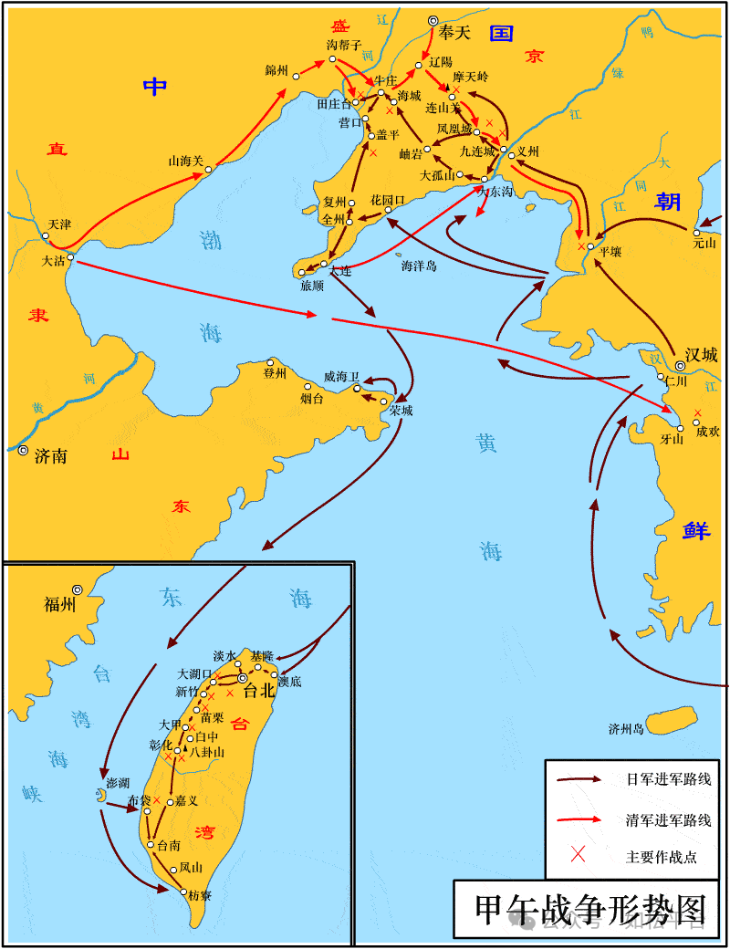 通过甲午战争之后,日本掌握了黄海、东海、台海等附近海域的制海权,而清朝的主权边界回收到陆地,再次成为一个陆地国家,这种情形一直延续了半个多世纪。
